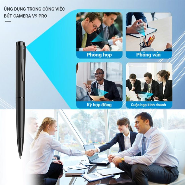 Khác với các mẫu camera thông thường, bút camera V9 Pro có thiết kế giống y hệt cây bút viết nên rất khó bị nghi ngờ phát hiện. Bút camera V9 Pro được trang bị mắt camera siêu nhỏ với độ phân giải Full HD 1080P, giúp bạn ghi lại những khoảnh khắc quan trọng với chất lương cao rõ nét. Cùng với đó V9 Pro còn có khả năng thu âm, lọc âm cực rõ mang lại âm thanh trong trẻo và rõ ràng nhất.